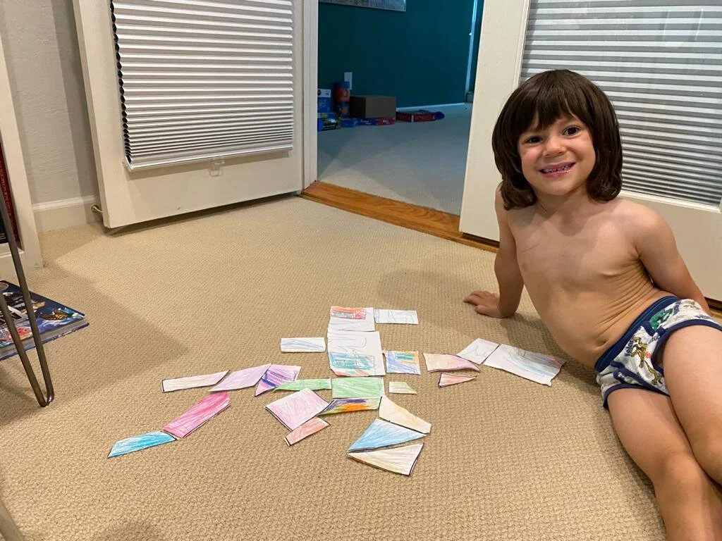 They made mosaic puzzles out of cardboard and crayons and did a free form spelling crossword game: Appletters